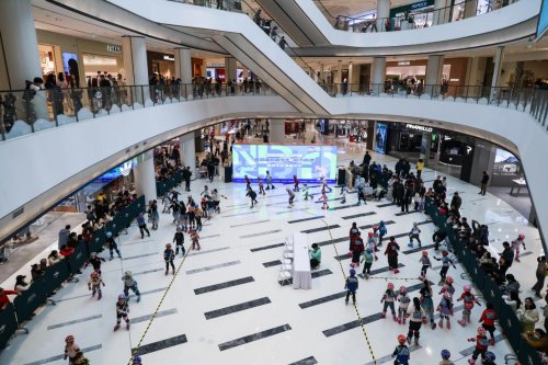 南京金陵天地开阔通透的室内中庭适配赛事需求,专业赛道与商圈动线巧妙衔接,既保障了赛事的安全性与流畅性,又让运动氛围渗透到消费场景的各个角落。赛事带来的高黏性人流为商圈注入新活力:参赛家庭赛后打卡特色餐饮、选购亲子好物;观赛市民被热烈氛围感染,主动咨询轮滑培训课程,走进运动品牌门店了解装备。这种“体育+商业”的深度联动,既让商圈突破传统消费边界,更让体育赛事获得更广泛的群众基础,实现商业价值与体育价值的双向赋能。